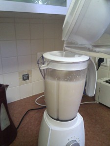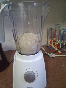 So now that I have 4 children, I really don’t have much time… but on the other side, I still want to give them home-made rice-milk to eat with their morning cereals (granola), instead of drinking cow milk (a known mucus creating agent) or rice-milk sold in stores (expensive). So I devised this very easy rice-milk recipe, which takes no time, all cooking elements can be washed in the machine-washer and gives you the best of both a sane an healthy world.